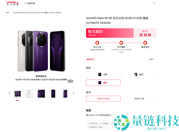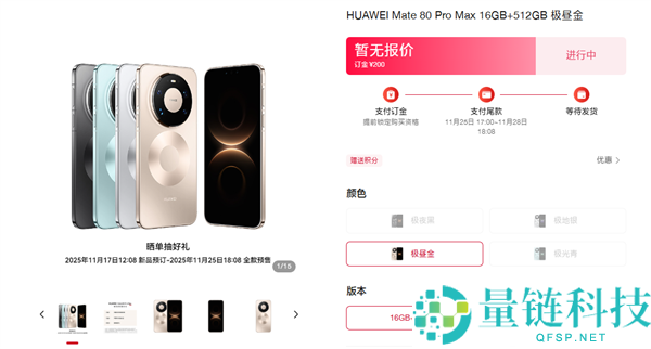 11月17日消息,今日,华为Mate 80系列宣布定档11月25日发布,目前已在华为商城上架,将于今天中午12:08开启预订。华为商城显示,作为华为