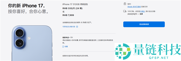 快科技9月12日消息,今晚8点,iPhone 17系列开启预购,开售瞬间被抢购一空,不少网友反映“根本抢不到”。目前苹果官网显示,现在下单iPho