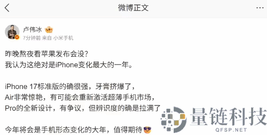 户晨风再现逆天言论 苹果17发布对安卓厂商是核打击
