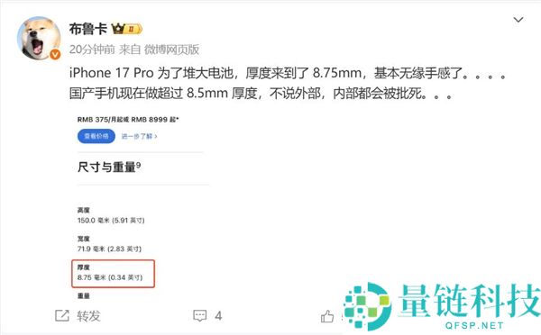 iPhone 17 Pro Max厚度增至8.75mm 博主:国产手机这么做会被批死