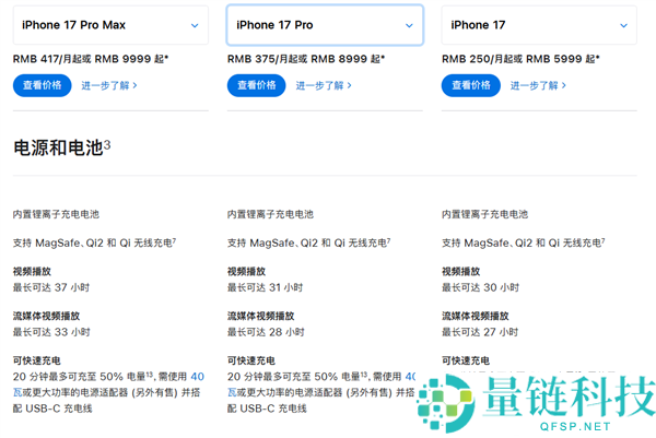 9月10日消息,苹果这次在iPhone 17系列的充电上表现的大方”了不少,不过想要体验也是需要额外收费的。从苹果官方列出的信息看,iPhone 1