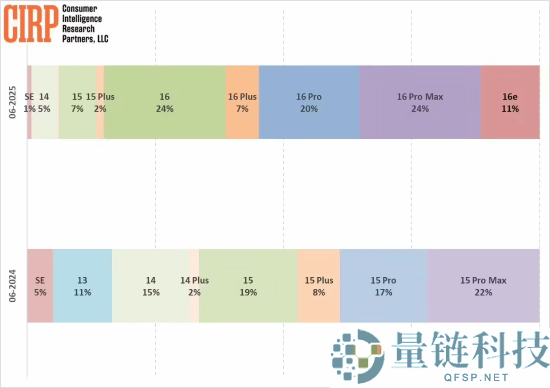 IT之家 7 月 31 日消息,市场调查机构 CIRP 在最新报告中指出,在 2025 年 6 月美国 iPhone 销量中,iPhone 16e 的占比达到