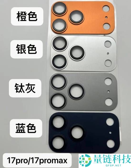 7月25日消息,博主Majin Bu在社交平台上晒出了iPhone 17 Pro的镜头盖板,一共有4款配色,分别是橙色、银色、钛灰和蓝色,其中橙色的辨识