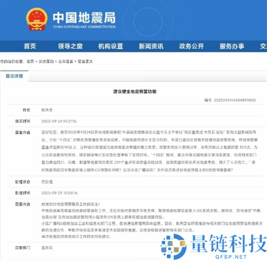 快科技10月5日消息,对于使用iPhone的用户来说,很快也能享受到地震预警信息提示了。近日有公众向中国地震局询问:地震局能否在地震系统上