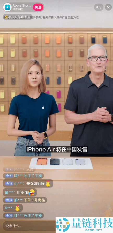 今日,苹果CEO库克现身Apple Store抖音直播间,宣布iPhone Air国行版将于10月17日开启预购,10月22日正式开售。据了解,iPhone Air起售