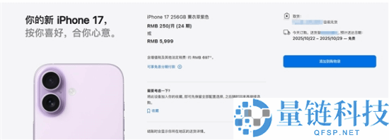 据快科技9月20日消息,苹果官网显示,iPhone 17预计送达时间是10月22日-10月29日,iPhone 17 Pro预计送达时间是10月15日-10月22日。众所