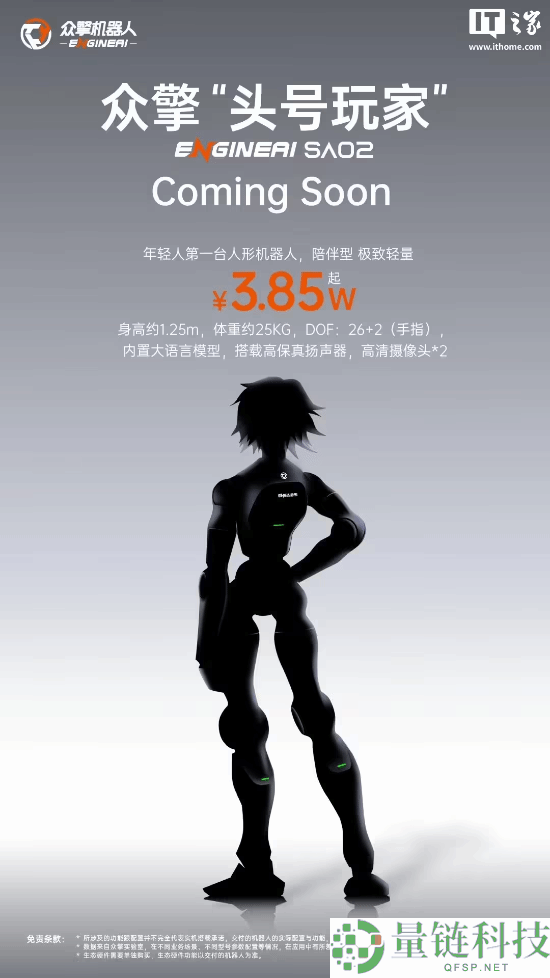 IT之家 8 月 7 日消息,深圳众擎机器人科技有限公司今日发文预热,将推出“年轻人的第一台人形机器人”—— 众擎“头号玩家”SA02。从