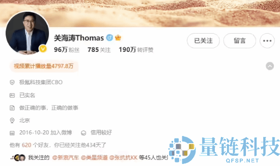 关海涛微博昵称去掉"极氪" 认证改成极氪科技团体CBO