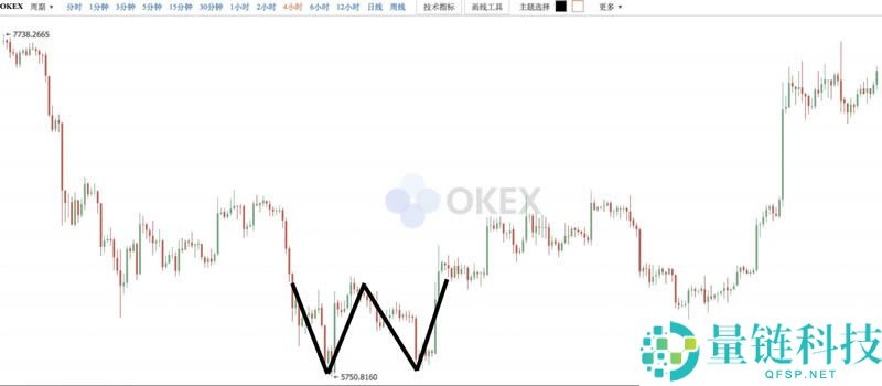 双重底也称"W底",是指股票的价格在连续二次下跌的低点大致相同时形成的股价走势图形。两个跌至最低点的连线叫支撑线,W底形态,长什么样子
