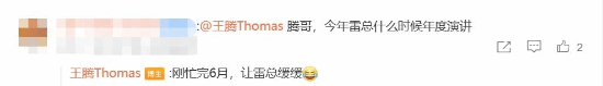 米粉很期待雷军年度演讲 王腾:刚忙完6月 让雷总缓缓