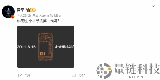 雷军晒小米第一代手机:问大家用过吗 评论区集体怀旧
