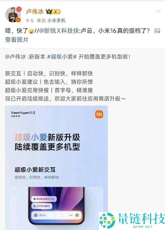 雷军年度演讲或在本月底 卢伟冰称接下来节奏会很快
