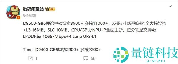 联发科史上最强Soc!天玑9500跑分曝光:单核成绩逼近4000大关