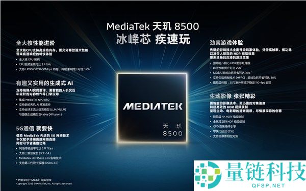 1月15日消息,苦等了一年多,联发科中端神U终于迭代了。天玑8500今天正式发布,各项性能全面提升,尤其是游戏、影像、AI方面实力暴涨。采用