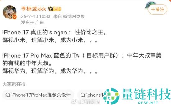 前魅族高管锐评iPhone 17系列:成了小米华为