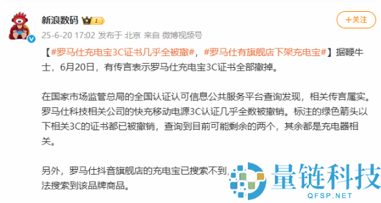 罗马仕充电宝3C证书几乎全被撤 旗舰店下架