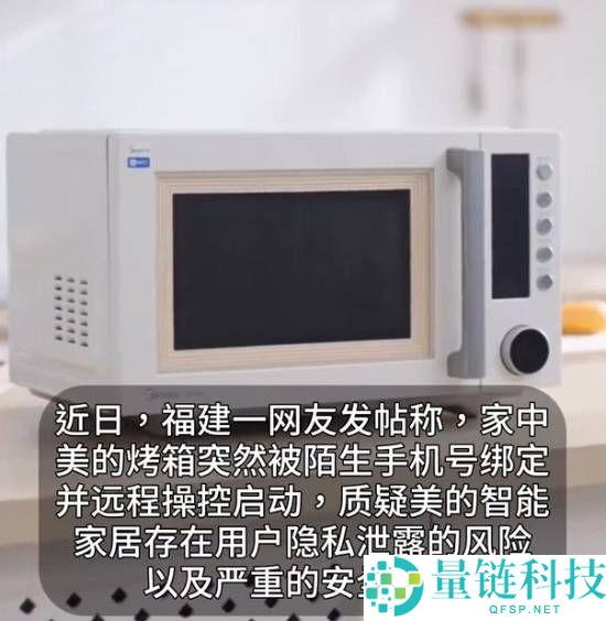 近日,有网友发帖称,家中美的烤箱突然被陌生手机号绑定,并远程操控启动,到家时发现烤箱周边滚烫。“若是不在家时被别人绑定,恶意启动,