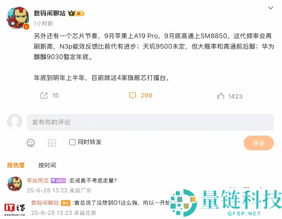 IT之家 6 月 28 日消息,博主 @数码闲聊站 发文,披露苹果将在今年 9 月推出 A19 Pro 处理器,高通将紧随其后(9 月末)推出