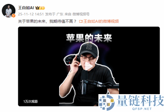 快科技11月12日,今日,王自如在社交平台发布视频并表示:关于苹果的未来,我期待值不高 ?视频中,他认为,以后真正的科技的发展趋势,其