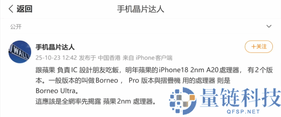 苹果A20芯片大暴光,首款折叠屏 iPhone 18新音讯