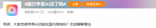 近日,微博话题“国行苹果AI凉了吗”引发热议。据@微博AI报道,苹果中国官网已正式上线iOS 26介绍页面,但其中移除了所有关于“苹果智能”
