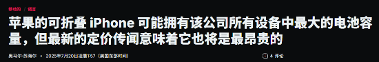 苹果折叠屏或配史上最大电池!定价也创苹果最贵纪录
