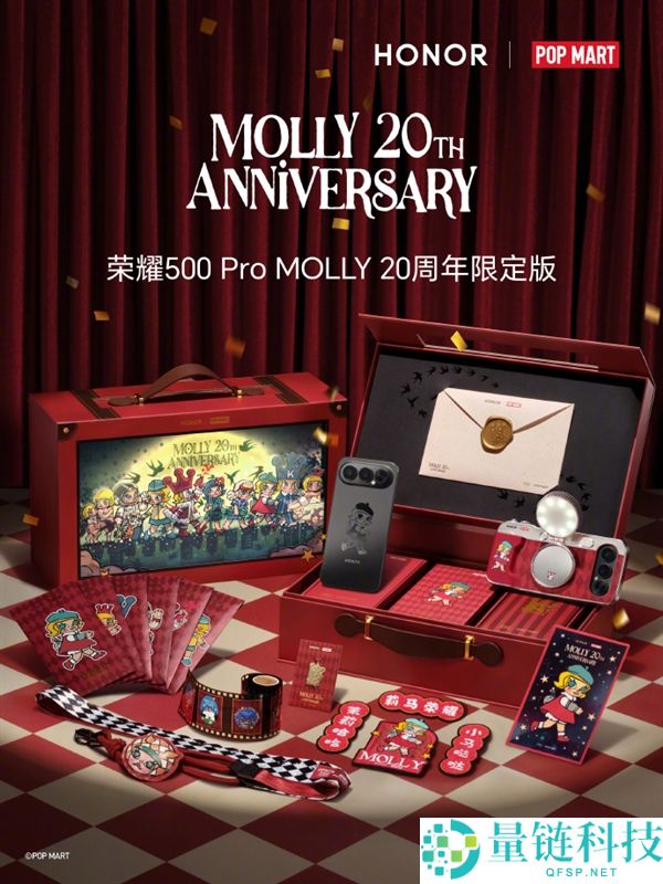 1月14日消息,今日,荣耀500 Pro MOLLY 20周年限定版礼盒正式亮相,这是荣耀与泡泡玛特旗下人气IP MOLLY的联名之作,也是行业首款潮玩