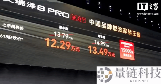 家轿王者!奇瑞艾瑞泽8 PRO 2.0T上市:12.29万元起