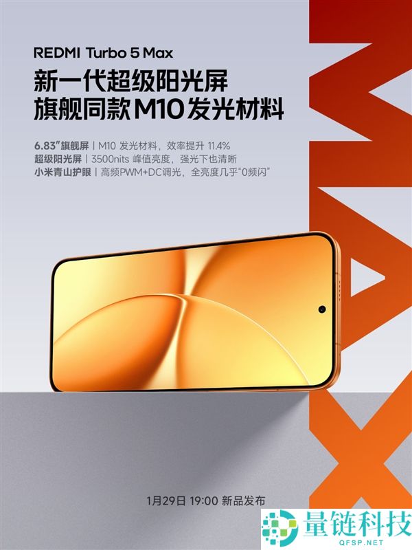 REDMI Turbo 5 Max搭载新一代超等阳光屏:6.83英寸、3500nits亮度