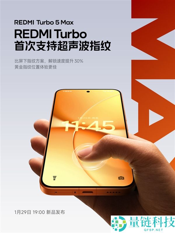 1月27日消息,REDMI Turbo 5 Max今天官宣搭载超声波指纹,是Turbo系列史上第一次。官方强调,Turbo 5 Max的超声波指纹相比屏下指纹速