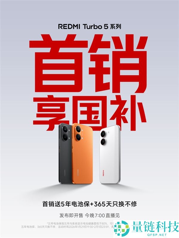 1月29日消息,REDMI Turbo 5系列将在今晚7点正式发布,官方刚刚宣布,新机发布即开售,而且首销就能享受国补。今年手机国补还是跟去年一