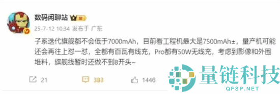 7月12日消息,据博主数码闲聊站爆料,子系迭代旗舰都不会低于7000mAh,其中也包括最受期待的REDMI K90系列。REDMI K系列目前是子系旗舰中