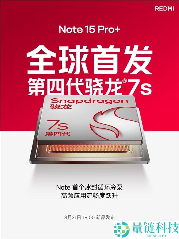 8月20日消息,REDMI今天正式官宣,Note 15 Pro 全球首发第四代骁龙7s。这是高通昨晚刚刚发布的新一代高性能低功耗体验芯,配备集成性能