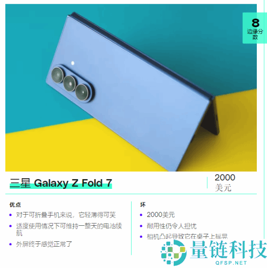 科技媒体theverge发布了三星最新折叠屏旗舰Galaxy Z Fold 7的测评。媒体给这款手机打出8分(8 10)成绩,称其惊艳但也贵得吓人。优点: