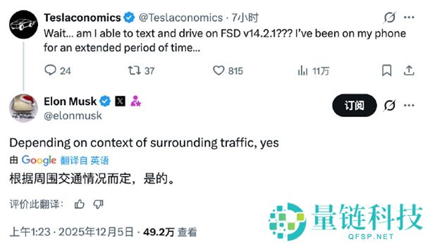 边发短信边开车?马斯克:特斯拉车主很快完成