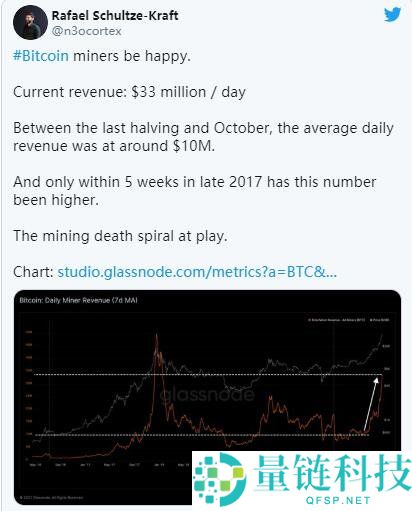 每日收益达3300万美元,比特币矿工利润直逼2017年高点!