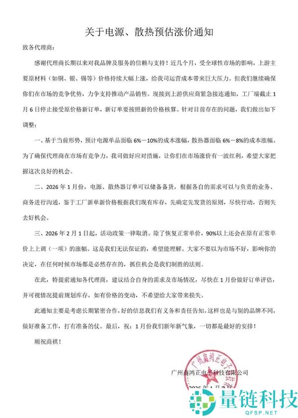 1月11日消息,内存涨价引发的连锁反应还在扩大,几乎没有任何电脑硬件可以幸免了,就连电源、散热器这些看着八竿子打不着的也不例外。网上