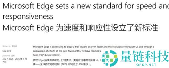 根据微软官方博客消息,Edge浏览器性能达成了一个重要里程碑——首次内容渲染(First Contentful Paint,FCP)时间成功降至300毫秒以下。