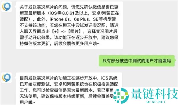 微信客服回应聊天能发实况图,暂时仅支撑iOS客户端