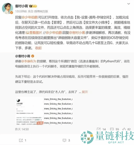 9月19日消息,有网友咨询微信员工客村小蒋:有没有考虑在后续微信功能里推出“详细删除大容量文件”,类似最新的iOS存储空间删除功能,让网