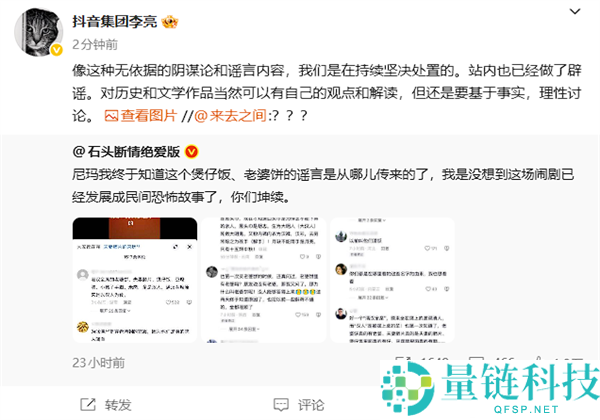 抖音李亮回应“满汉全席”吃汉人谎言,延续果断处理,