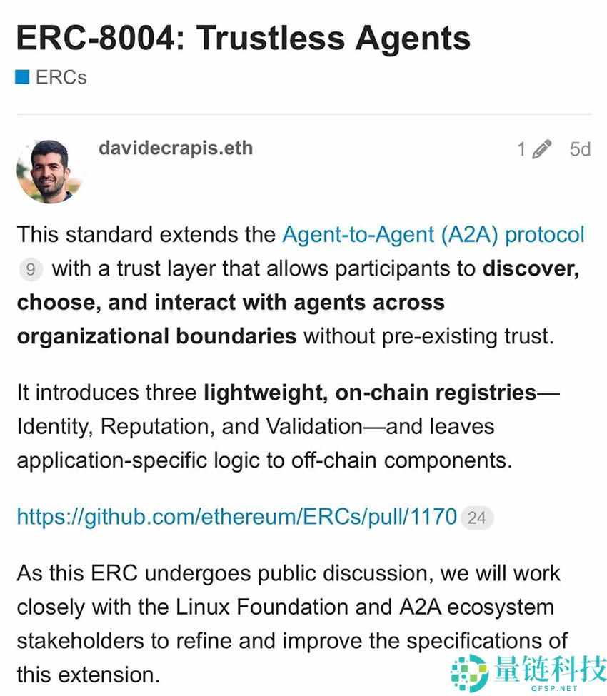 目录ERC-8004 :支付的前提,是给AI做身份登记等等,这和