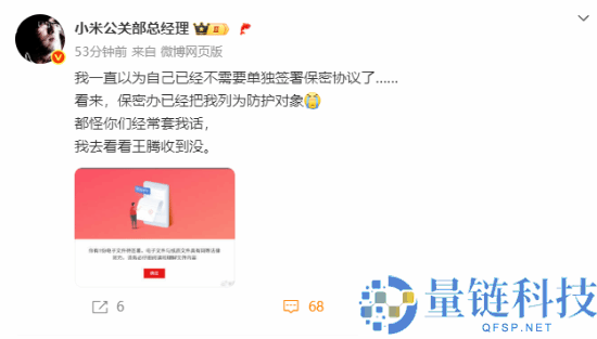 6月19日消息,今日下午,小米公关部总经理王化在社交平台发文,意外“泄密”小米集团有保密办。原文如下:我一直以为自己已经不需要单独签