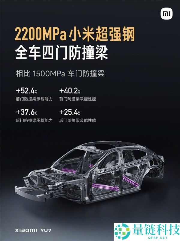 6月21日消息,本月底要正式发布的YU7在被动安全性方面做出的提升。按照雷军的说法,小米YU7将2200MPa超强钢应用于车身前后车门防撞梁,共计
