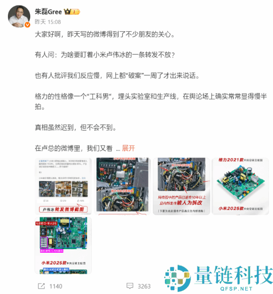快科技8月27日消息,格力市场总监朱磊已经连续多日发文质疑小米,日前还晒出了主板对比图,称小米新品不如格力四年前产品。对此,小米大家