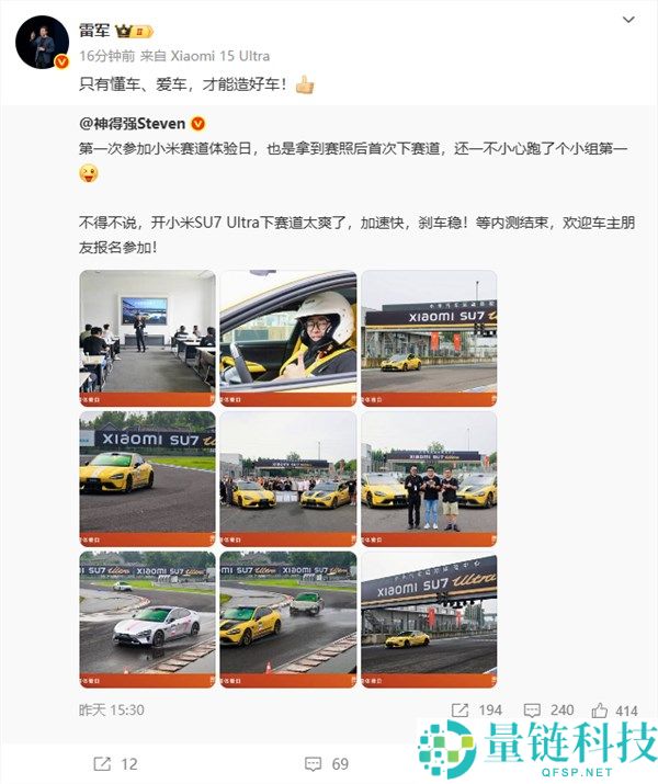 小米高管第一次下赛道就跑第一 雷军点赞:懂车、爱车才能造好车