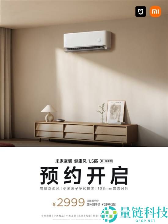 小米推出米家空调健康风1.5匹:自带离子净化 国补价2399.2元