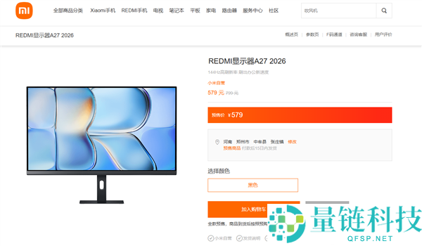首发579元 REDMI显示器A27 2026发布:144Hz高刷、3年原厂质保