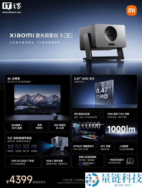 4399元!小米“Xiaomi激光投影仪3 4K”开售