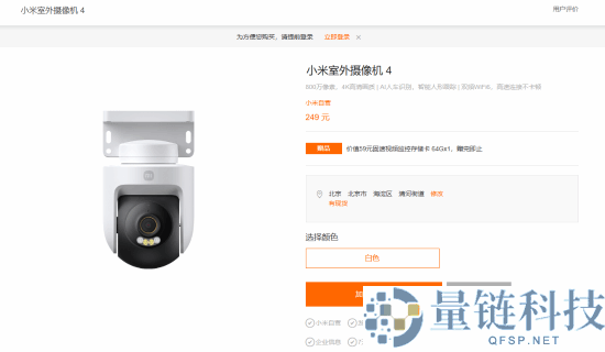 今日,小米室外摄像机4发布,售价249元,购买赠送价值59元的64GB固速视频监控存储卡,赠完即止。据了解,小米室外摄像机4配备800万像素镜头